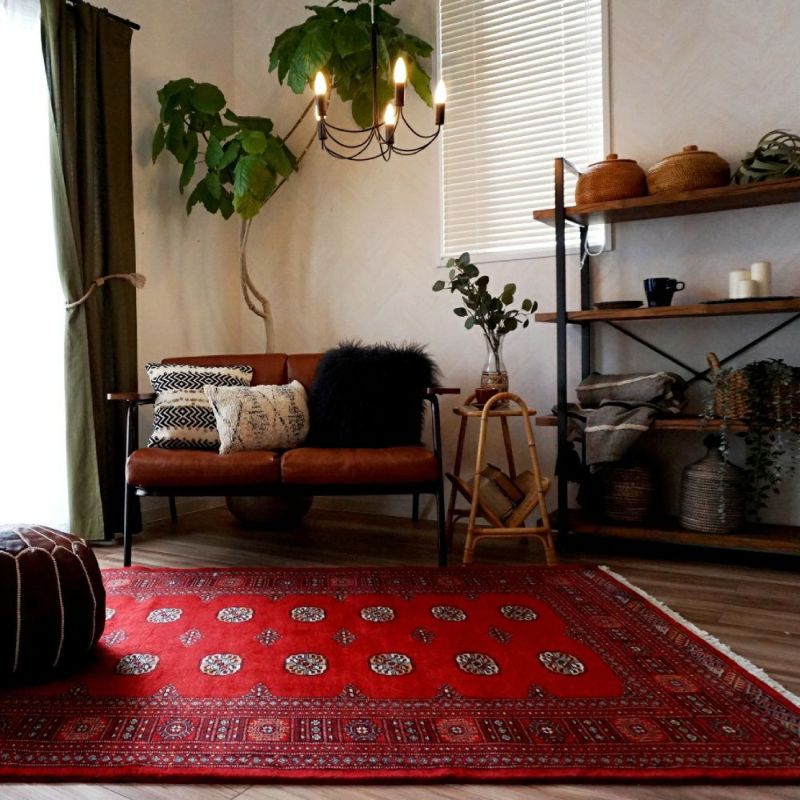 一方で色使いについては、色鮮やかで豪華な印象のペルシャ緞通と比べて落ち着いた印象で、モダン・クラシック・和室など他のテイストともコーディネートしやすいという魅力があります。
