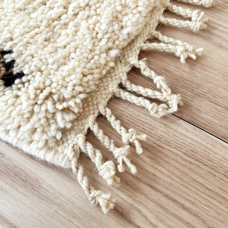 アトラス山脈に生息するモロッコの羊の毛をふんだんに使ったもこもこの手織りラグ・マットです。