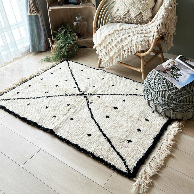 アトラス山脈に生息するモロッコの羊の毛をふんだんに使ったもこもこの手織りラグです。