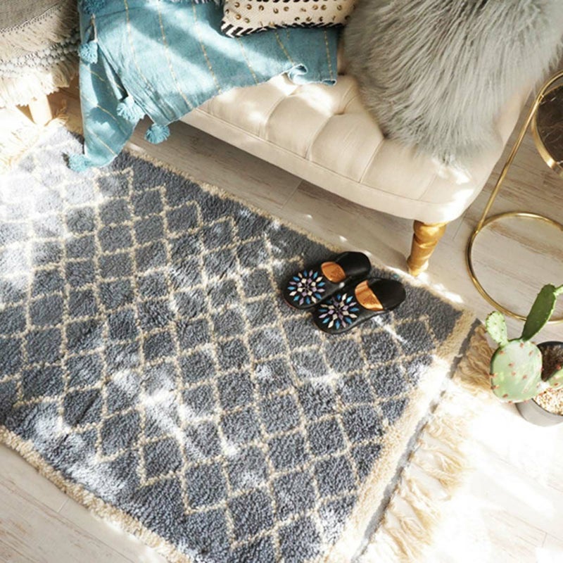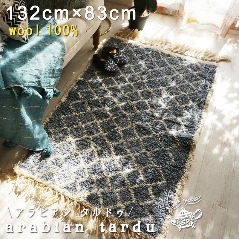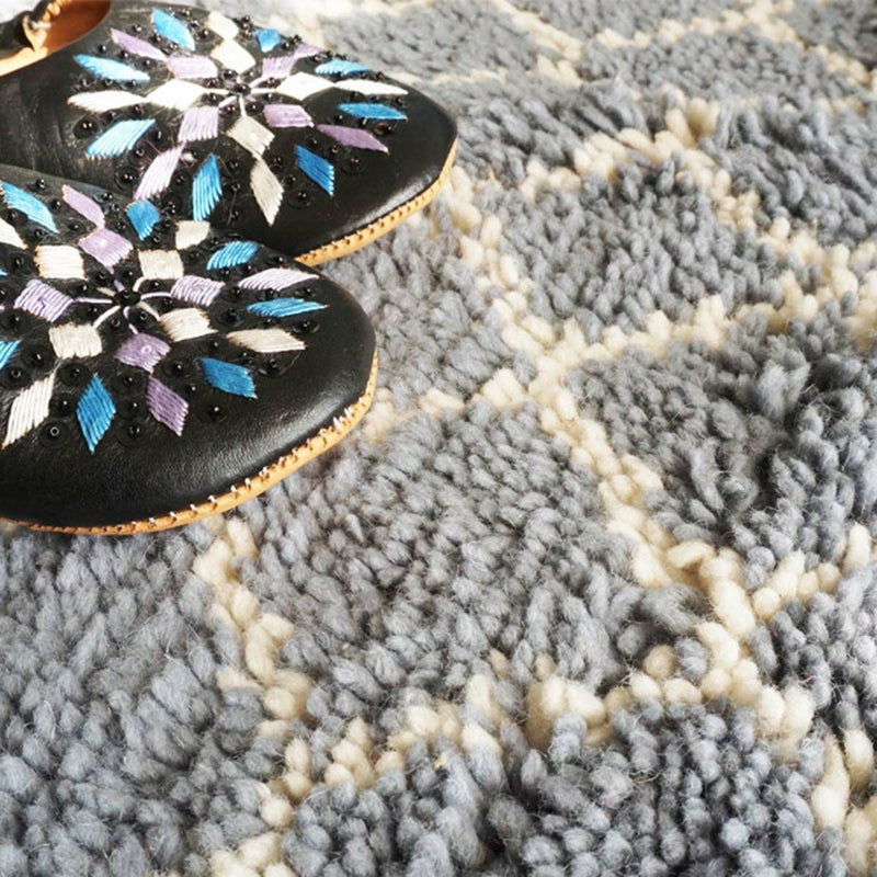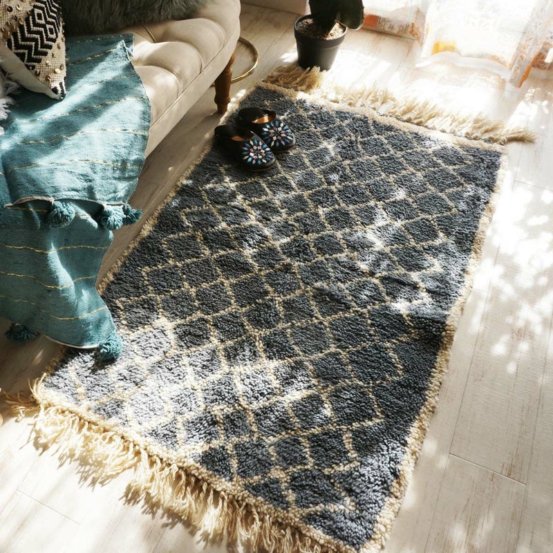 アトラス山脈に生息するモロッコの羊の毛をふんだんに使ったもこもこの手織りラグです。