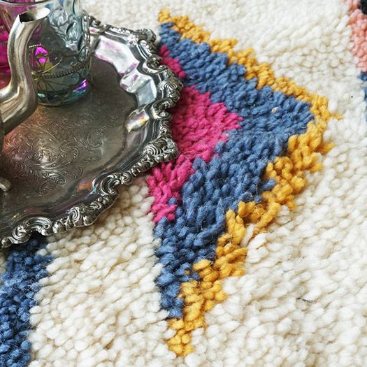 アトラス山脈に生息するモロッコの羊の毛をふんだんに使ったもこもこの手織りラグです。