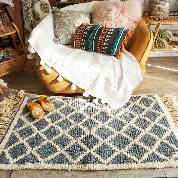 アトラス山脈に生息するモロッコの羊の毛をふんだんに使ったもこもこの手織りラグです。