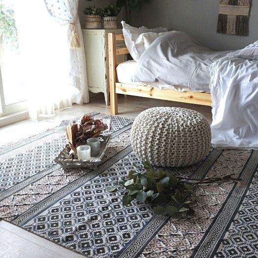4. ★50%OFF★ハンドブロックプリントインドラグ・ナチュラルでおしゃれなデザイン【HOME SWEET HOME - ホーム スウィート ホーム】<block road ブロックロード>:3サイズ