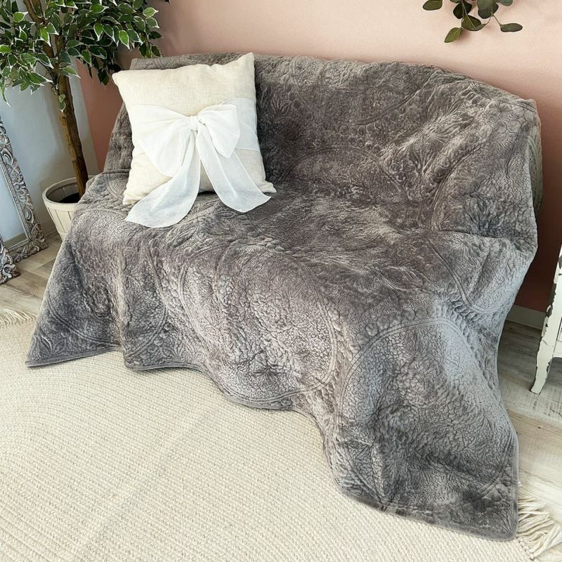 洗える刺繍がおしゃれなマルチカバー<mignon shabby qulit -ミニョンシャビーキルト アイボリー->
