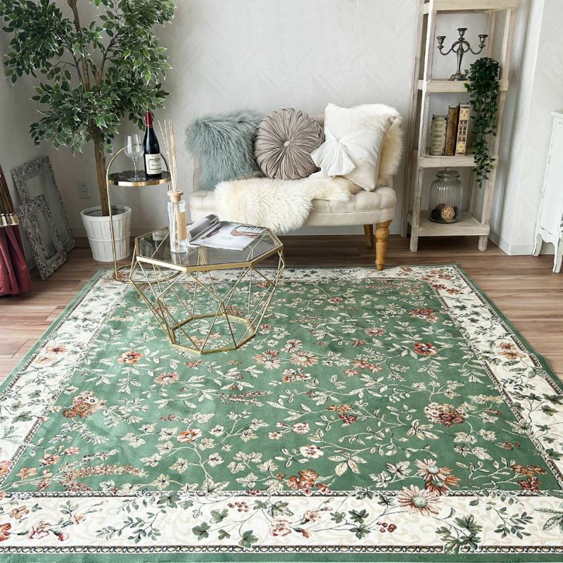 クラシックなフラワーモチーフのベルギー産モケット織ラグ<Reperie レプリー ベージュ>