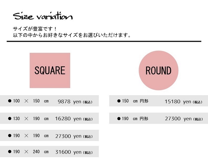 円形・四角と2タイプございますが、サイズも豊富ですので、お部屋に合わせて選んで頂けるのも魅力です!