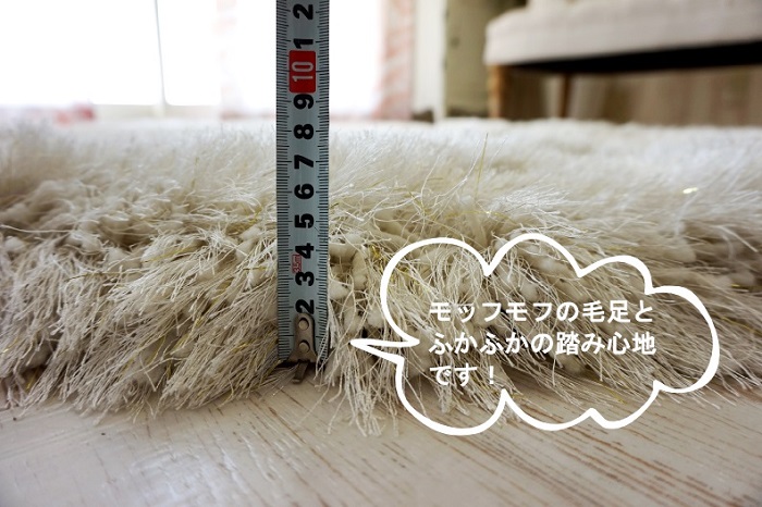 重量が多いほど目が詰まった高密度な目付となりますので、ふかふかなラグの目安になります。