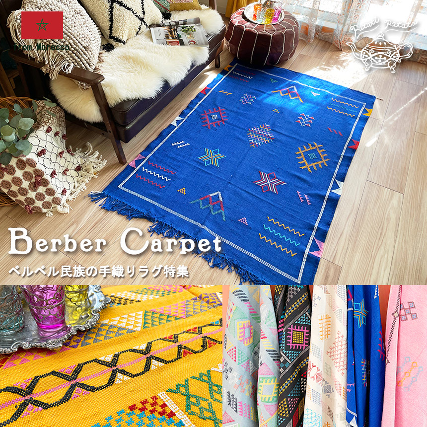 モロッコ直輸入!カラフルな色彩が魅力のベルベル民族の伝統的な手織りラグ!
