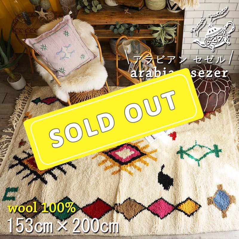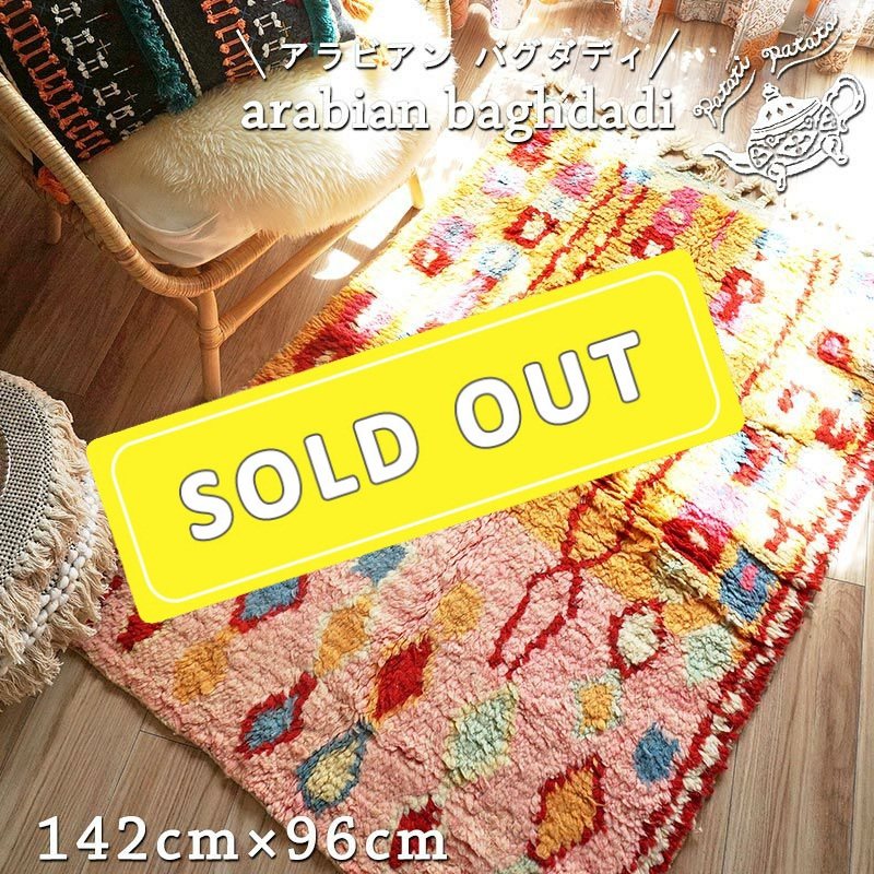モロッコ発!『ボシャルウィット』ヴィンテージカーペット・ラグ patati-patataV3-1 アラビアン ラーイ>140x76cm