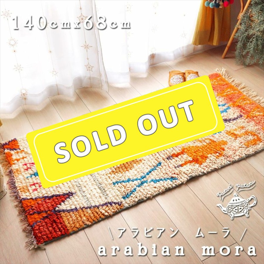 モロッコ発!『ボシャルウィット』ヴィンテージカーペット・ラグ patati-patataV2-1 アラビアン ムーラ>140x68cm