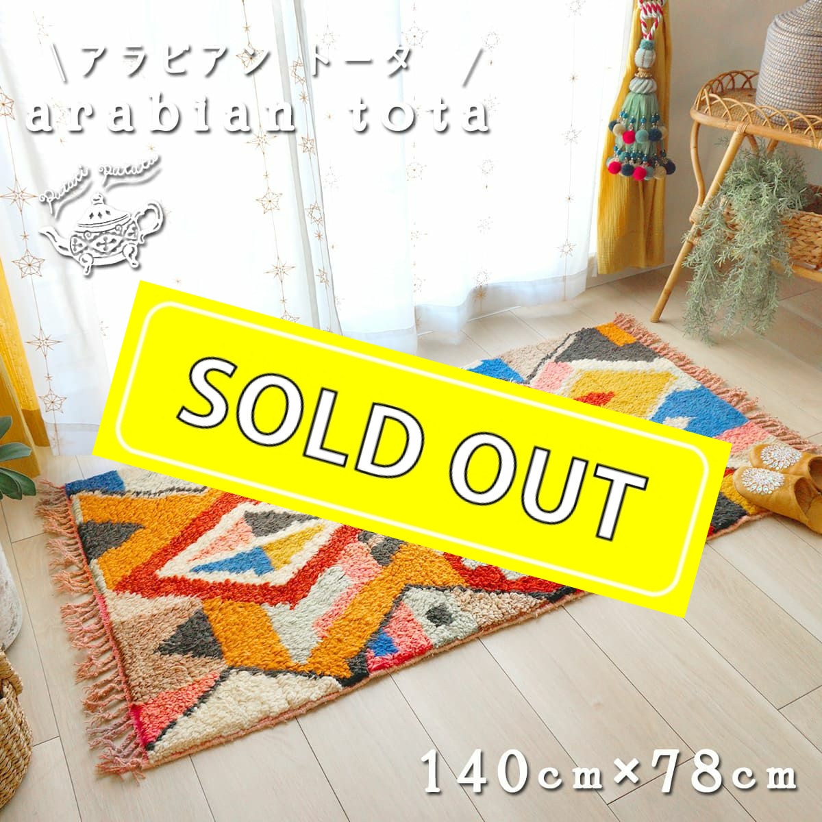 モロッコ発!『ボシャルウィット』ヴィンテージカーペット・ラグ patati-patataV3-1 アラビアン ラーイ>140x76cm