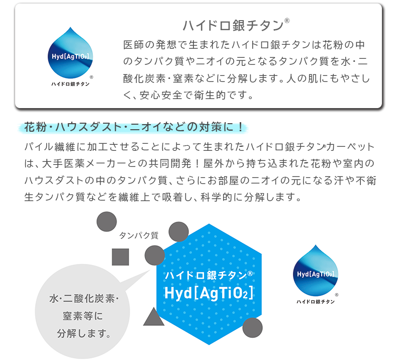 大人気のハイドロ銀チタンカーペット 花粉・ハウスダスト・ニオイなどのタンパク質を分解!< Briller - ブリエ アイボリー ->:3サイズ