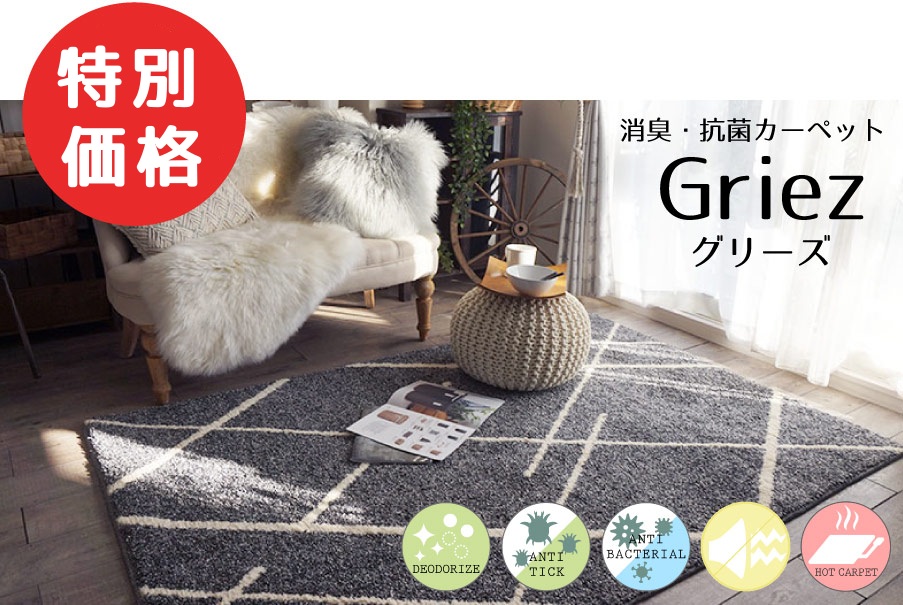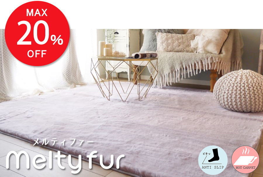 光沢糸を加えることで、ふんわりやわらかな肌触りとと光沢感を出したシャギーラグ