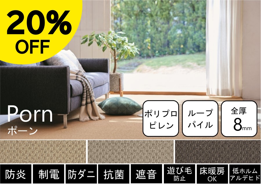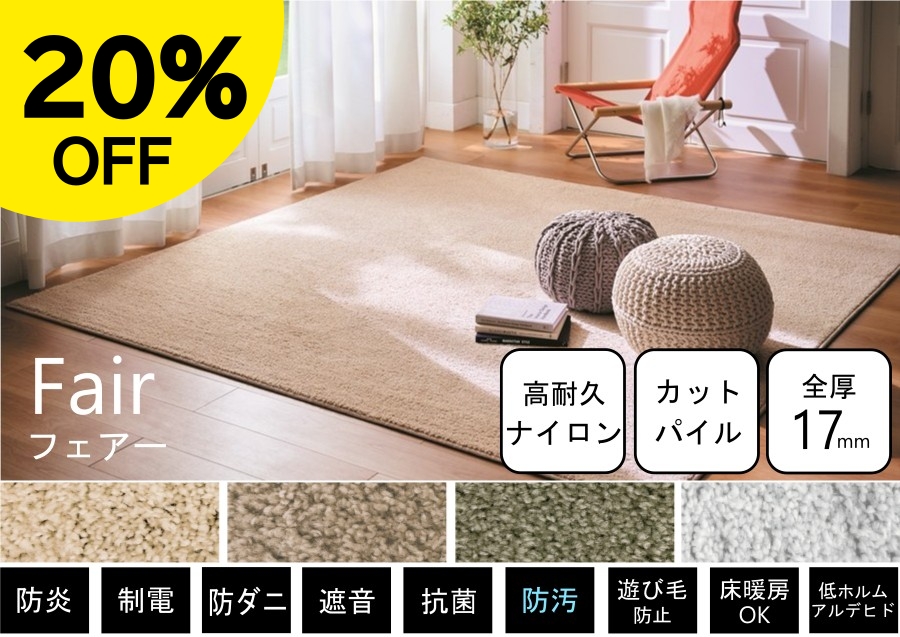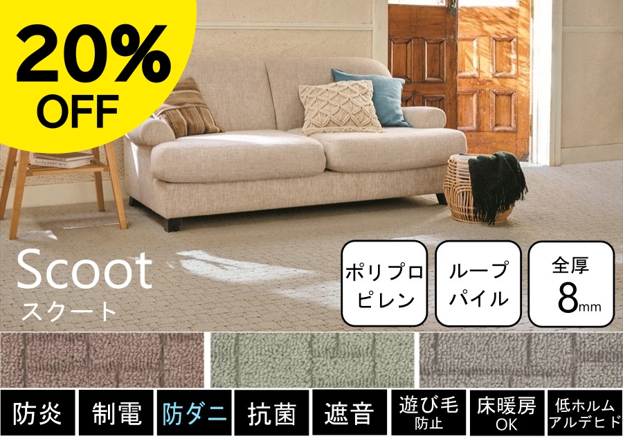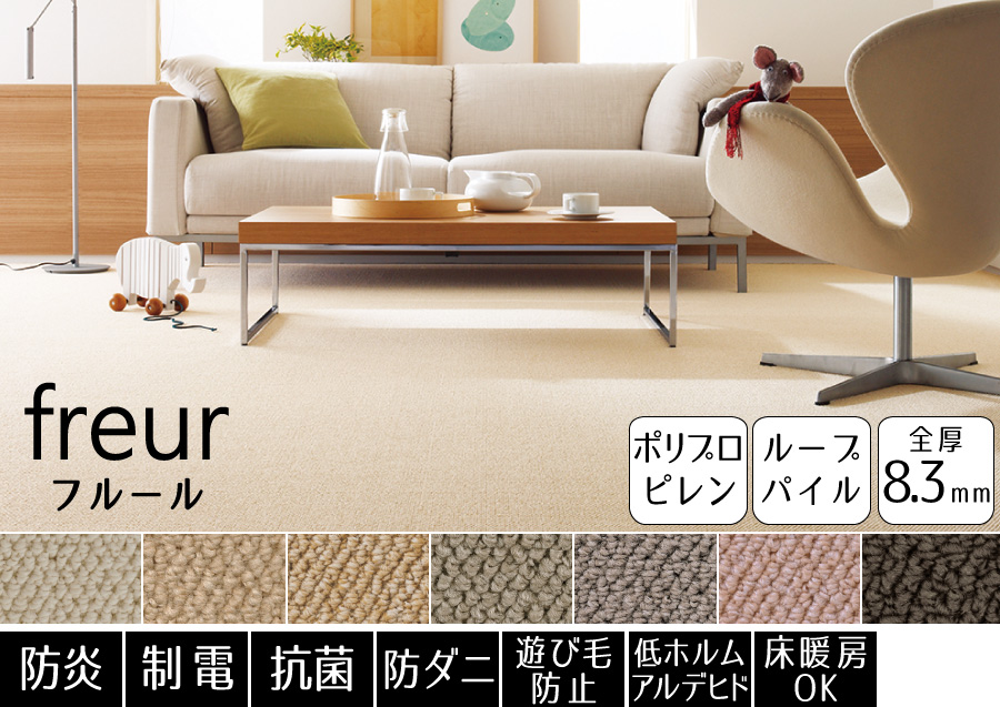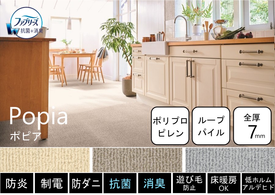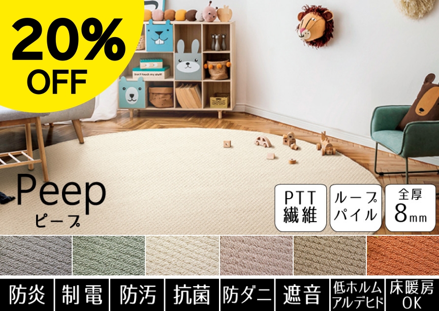 PTT繊維を使用したびっくりするほど汚れが落ちる高機能カーペット。子供部屋・リビングダイニングと幅広くお使い頂けます。