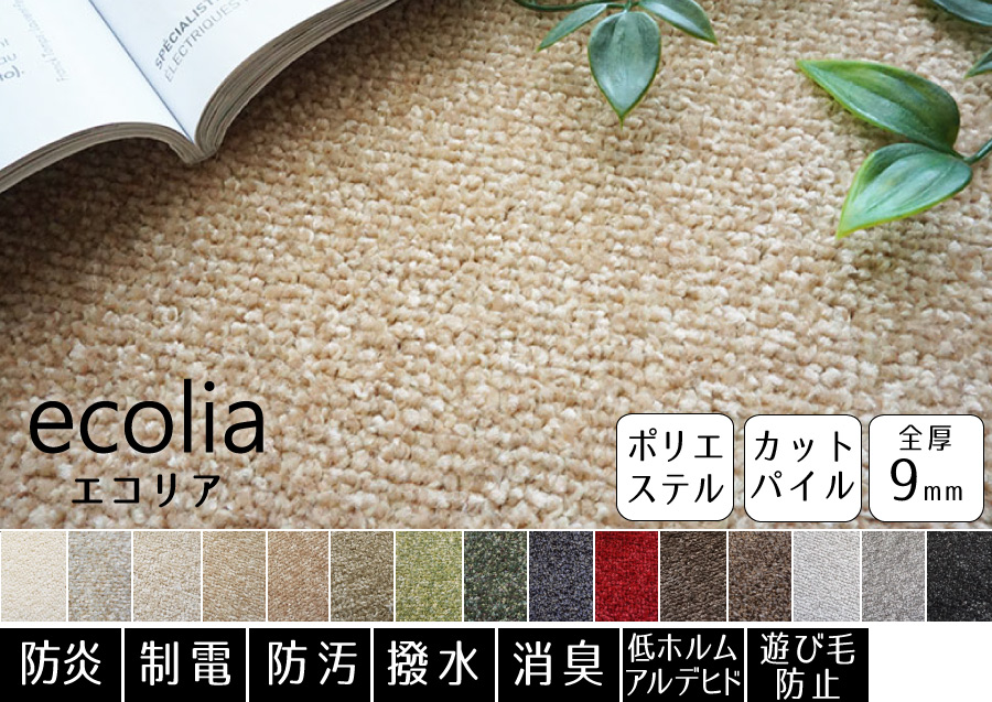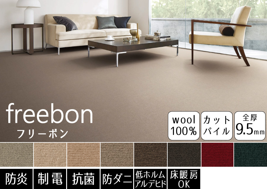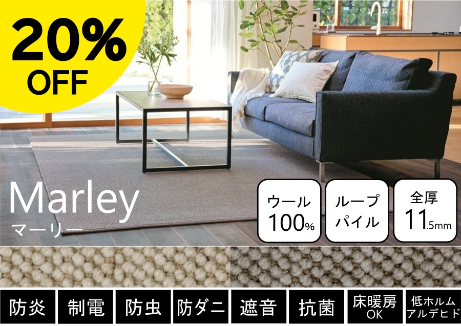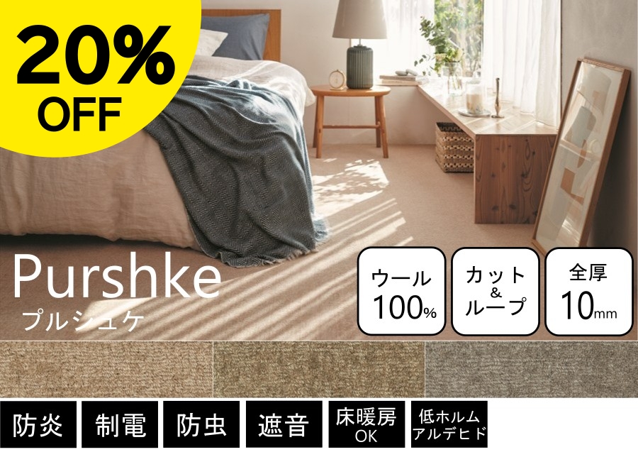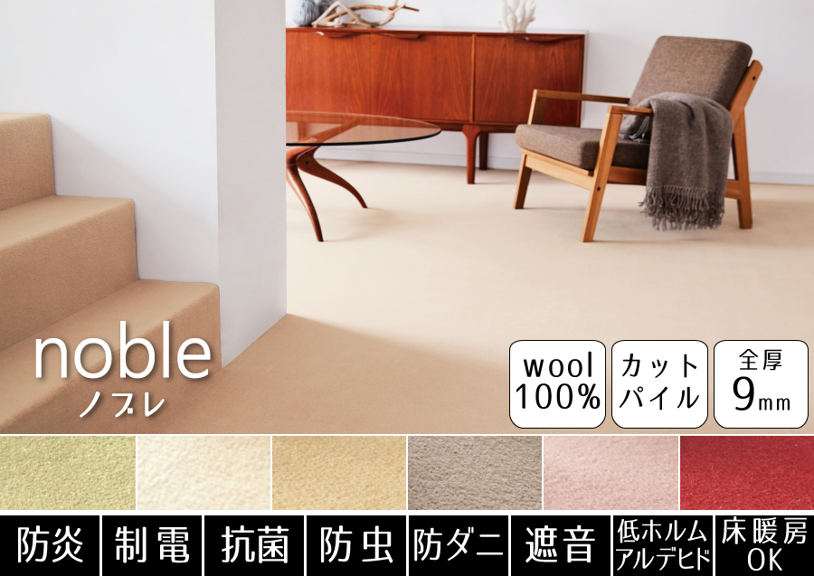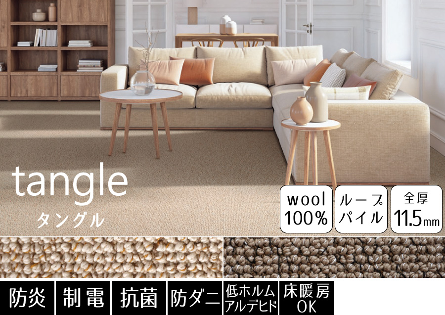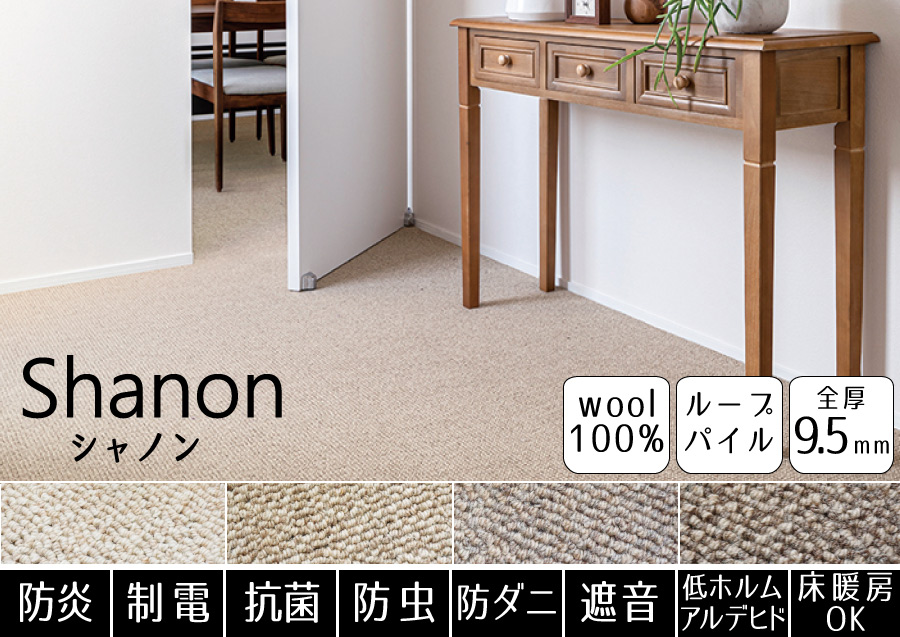 豊富なカラーから選べる!消臭機能付きが嬉しいウールカーペット。防ダニ機能も付いているので、小さなお子様やペットがいるご家庭でも安心