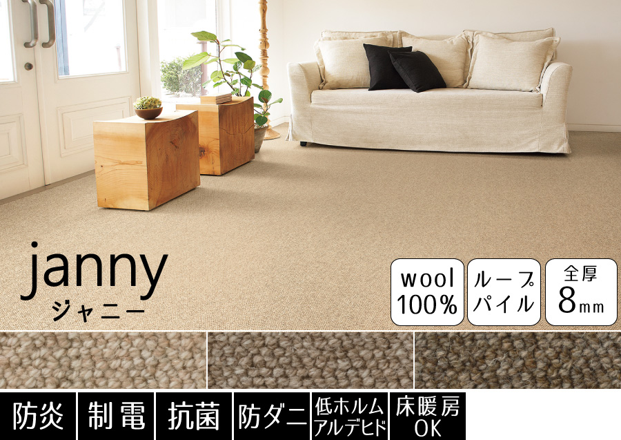 特殊な織機で仕上げた大きめループが特長のウール・カーペット。ウールならではの優しいカラーと、ポコポコがかわいいカーペットです。