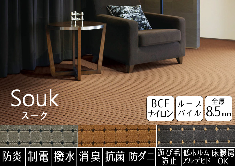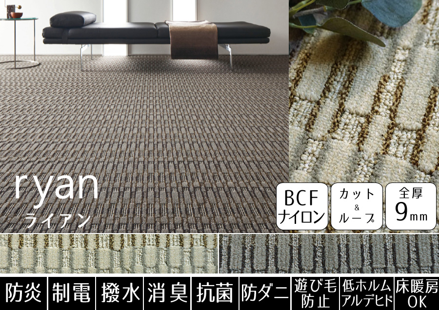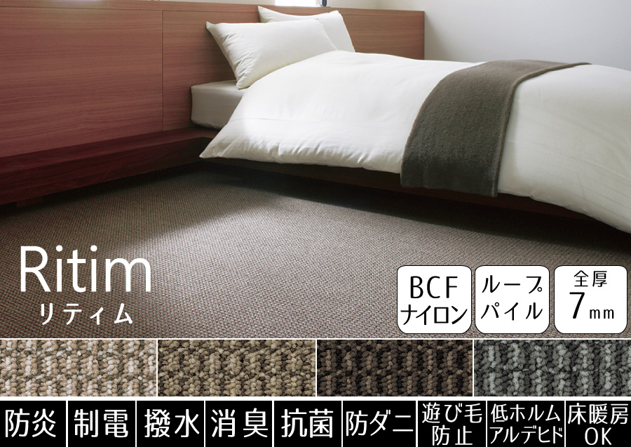 豊富なカラー展開から選べる!高機能でお手入れラクラクなナイロンカーペット。遊び毛も出にくくお手入れも楽々♪