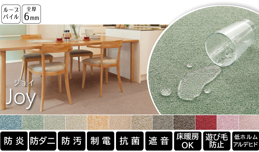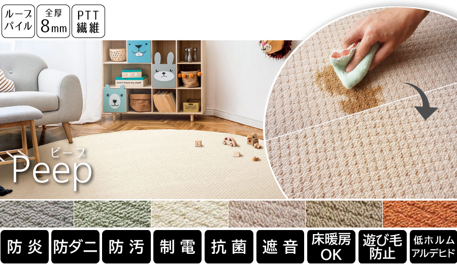 お手入れ楽々!遊び毛が出にくい日光による退色に強いポリプロピレン製カーペット