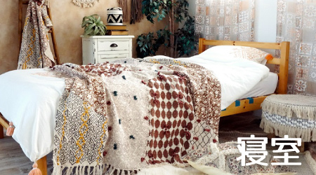 寝室のコーディネートはベッドカバーなど寝装品との組み合わせで、さらに自分好みにコーディネートできます♪