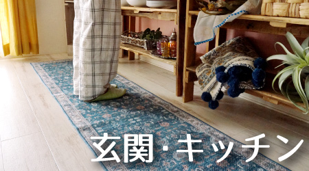 ダイニングとお揃いのキッチンマットを敷くと、空間にも統一感が生まれ、家事の時間の気分もたのしくなります♪