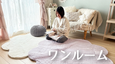 円形やフラワー形などのラグは、お部屋を広く見せてくれる効果もあるのでオススメです。