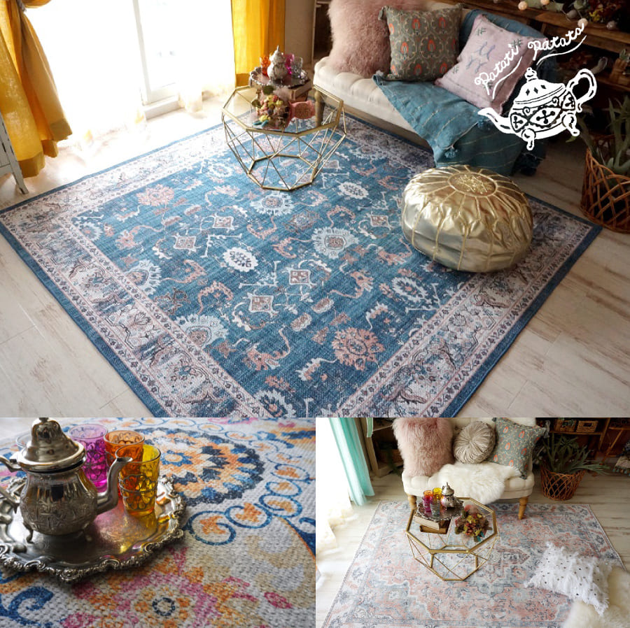 洗えるモロッカン柄ラグ。擦れたデザインがヴィンテージ感を演出してくれます。