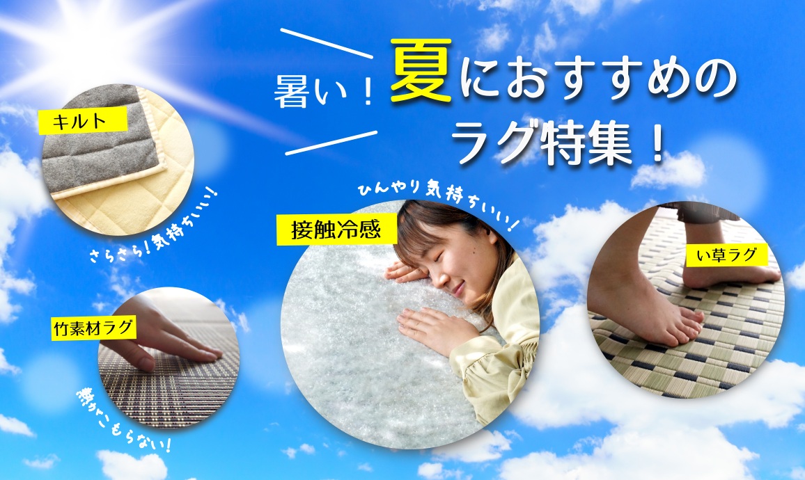 触れるとひんやり気持ちいい冷感ラグや、さらっとした手触りの綿・麻などの天然素材アイテムなど、夏にオススメのラグを豊富にご用意しています!